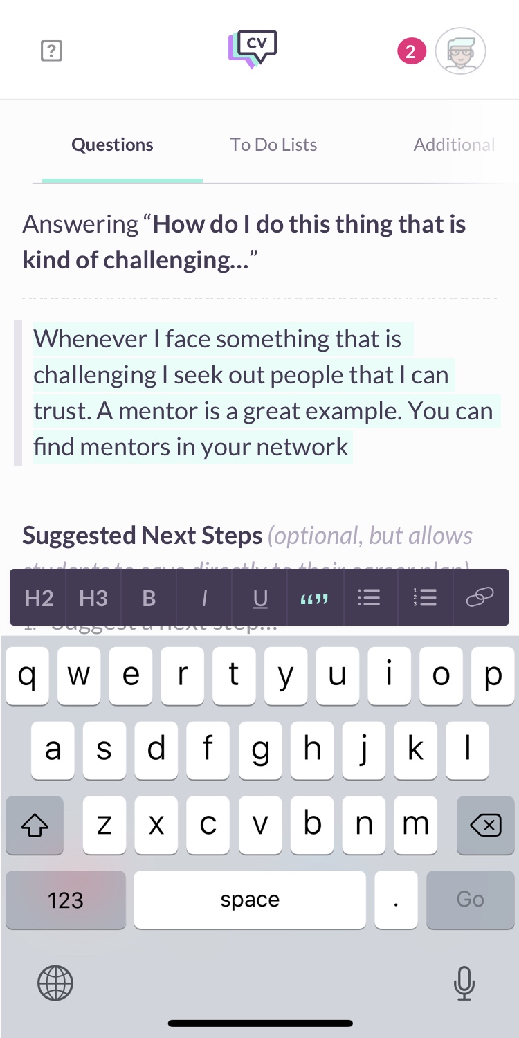 Student users are young, they’re typically between the ages of 16-18 and they’re getting ready to go to college. How does CareerVillage retain their usage after they enter university. At this point, the QA portion of the product doesn’t really serve them very well. Presumably, they’ve set their minds on their major and are confident about their choice. How do we continue providing value to these users.