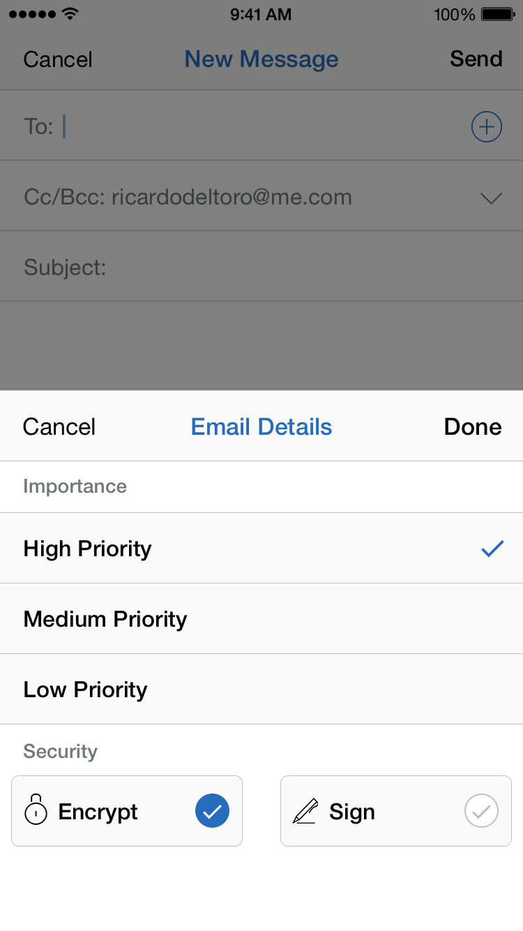 The core objective for Soliton Systems was to make DME a more appealing product to its current customer base and potential customers. The way we achieved this objective was to surface the strengths of DME, such as email encryption in the compose email interface in a simple and straightforward way.