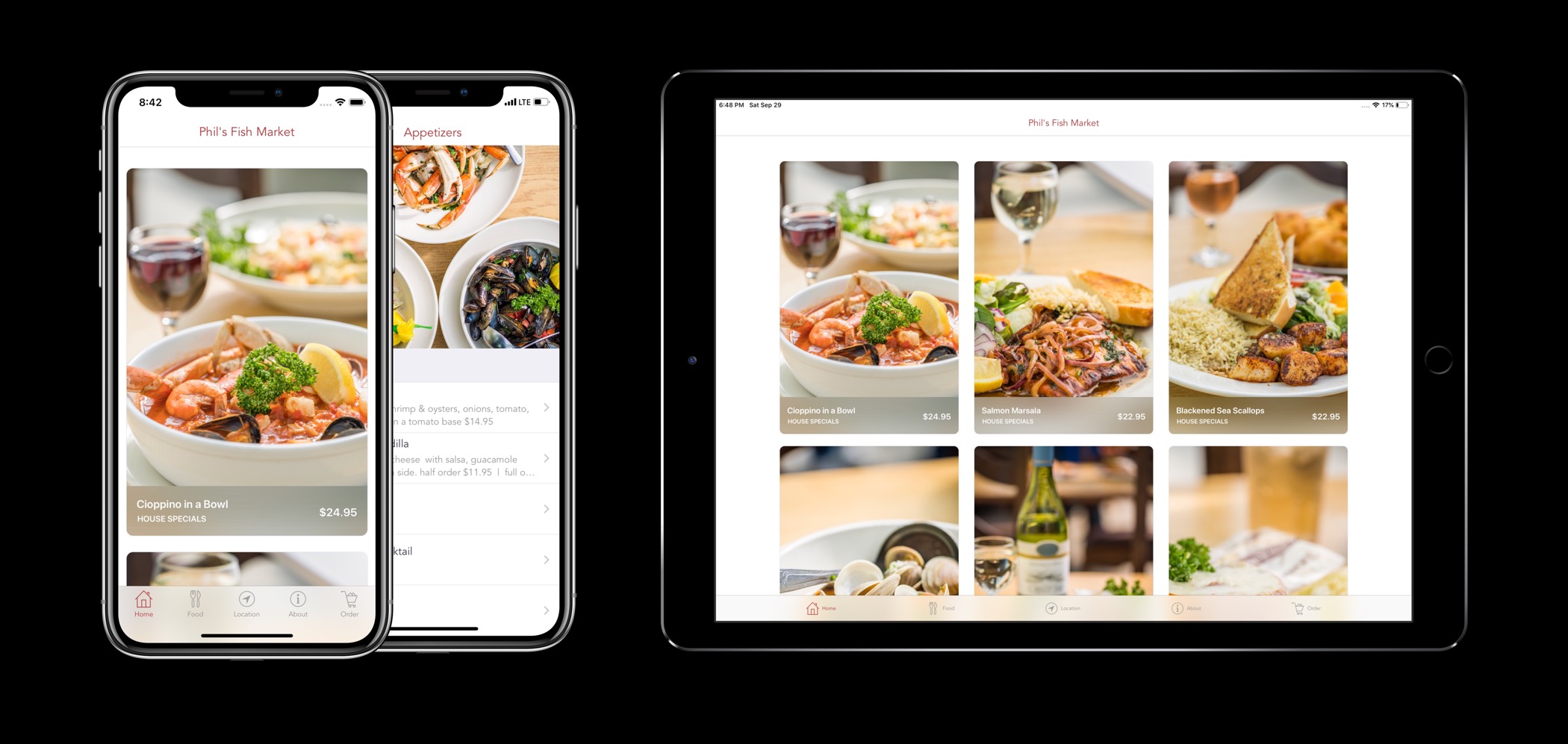 My role in this project was to create an experience for customers visiting Phil’s Fish Market, a popular restaurant in my area. My responsibilities in this project were to design the app, create interactive prototypes to test various design ideas and build the app. The goal of the client was to integrate the menu, make it easy for people to arrive at the restaurant and include promotional material.