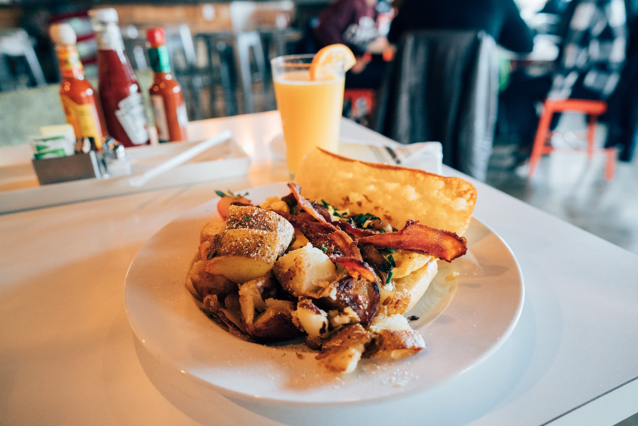 Whenever I’m in a new city, Foursquare is golden for finding new places to try. Early in the morning I launched Foursquare on my iPhone and searched for breakfast in Las Vegas. I found Eat. in downtown Las Vegas, not a great neighborhood but it has a scene for really hip places to eat. Eat was incredible and it did not disappoint. I ordered a Truffle Egg Sandwich and an orange juice. The Truffle Egg Sandwich contains two farm fresh scrambled eggs, wild mushrooms, chives, feta, bacon and chive potatoes on ciabatta. It sounds delicious and it was. The total was around the $20.00 range and it was entirely worth it. It was also a participant of American Express Shop Small promotion, earning 2x per dollar spent. In my case, I used my SPG AMEX to pay, earning 2 Starwood points per dollar.