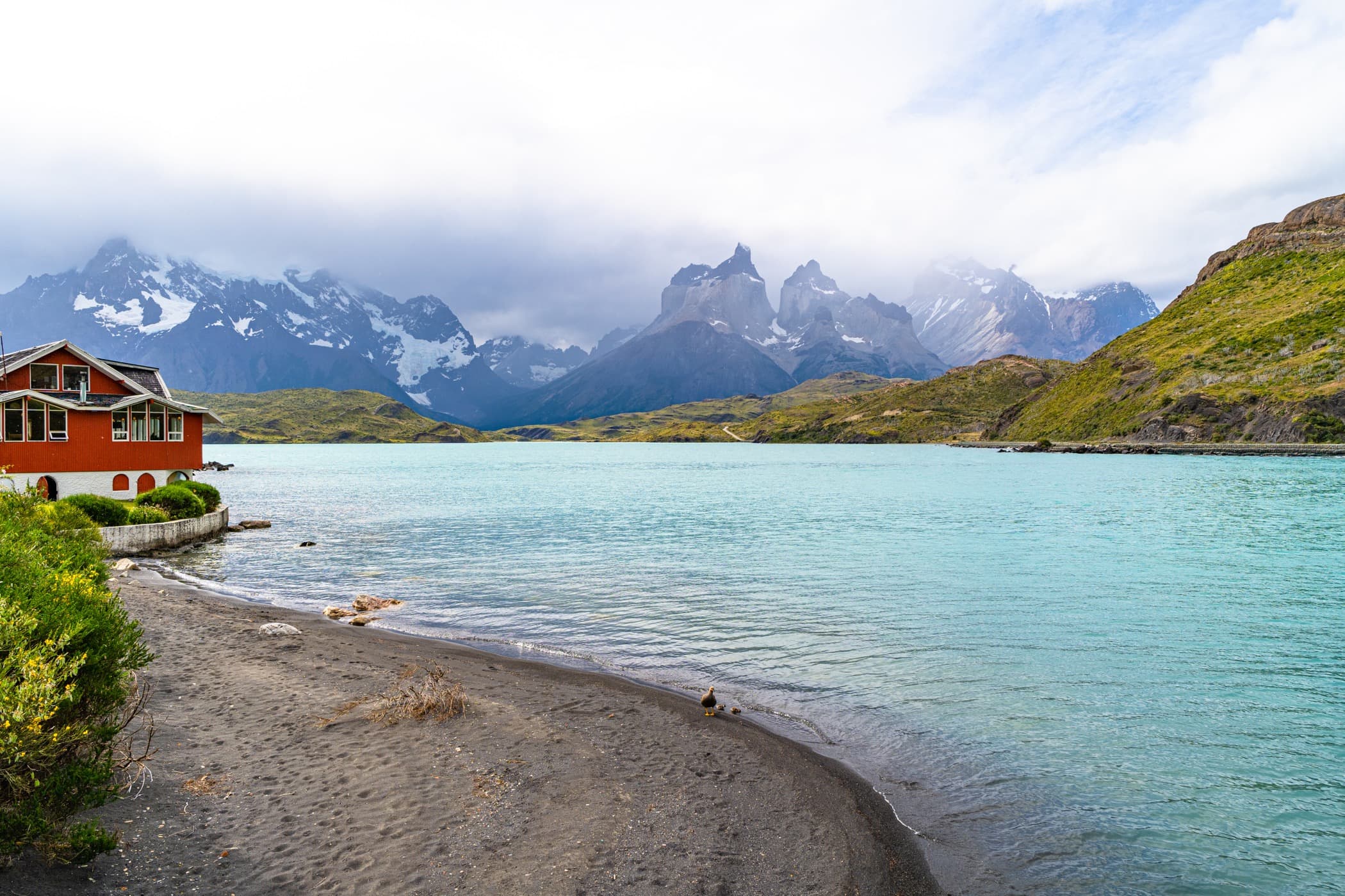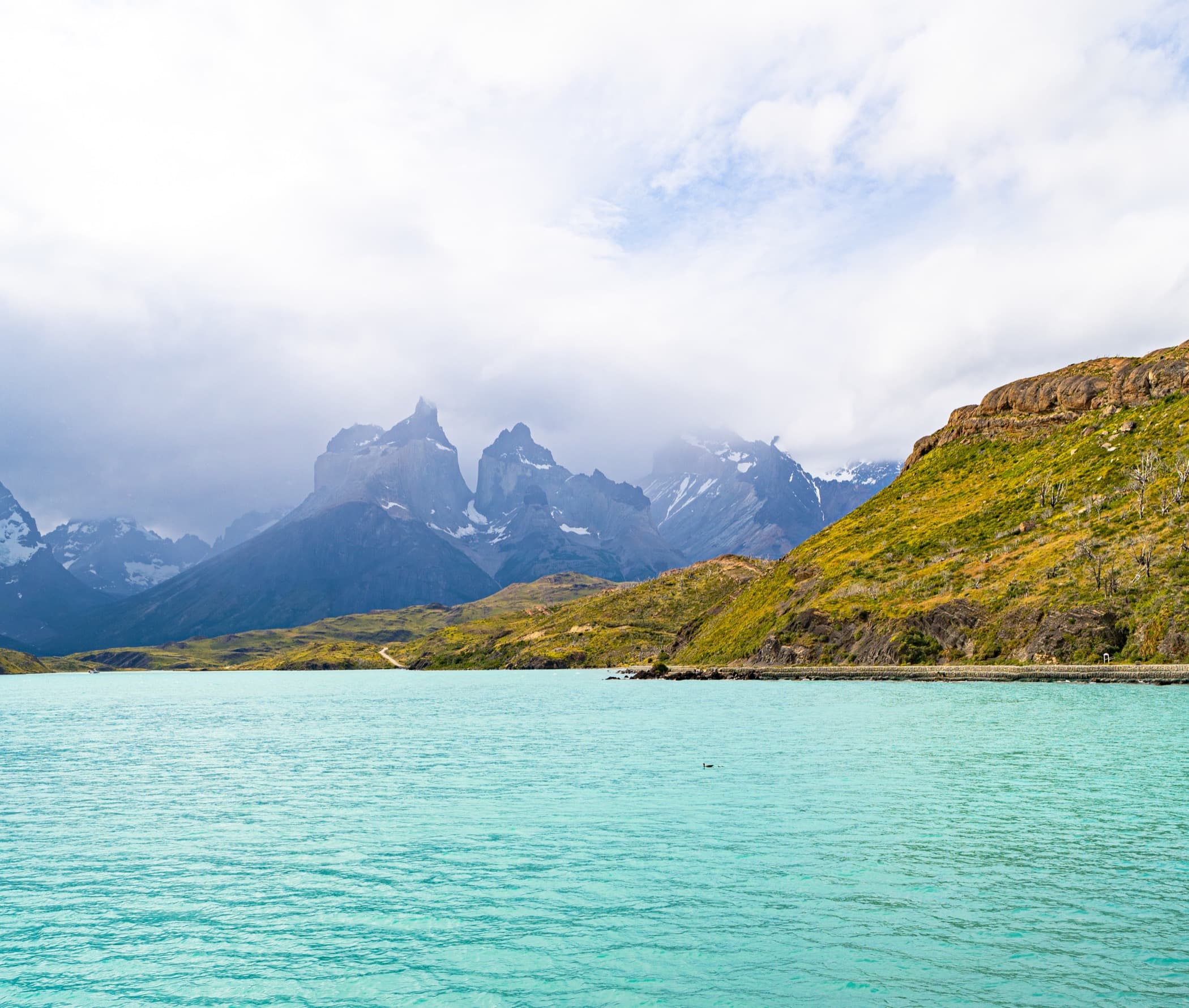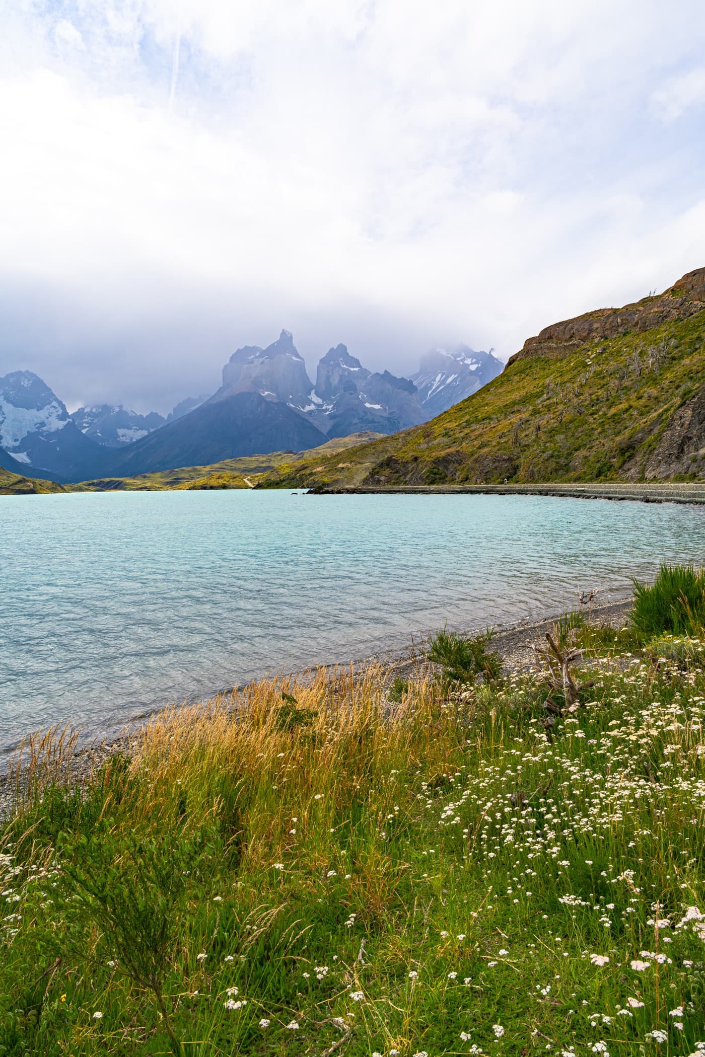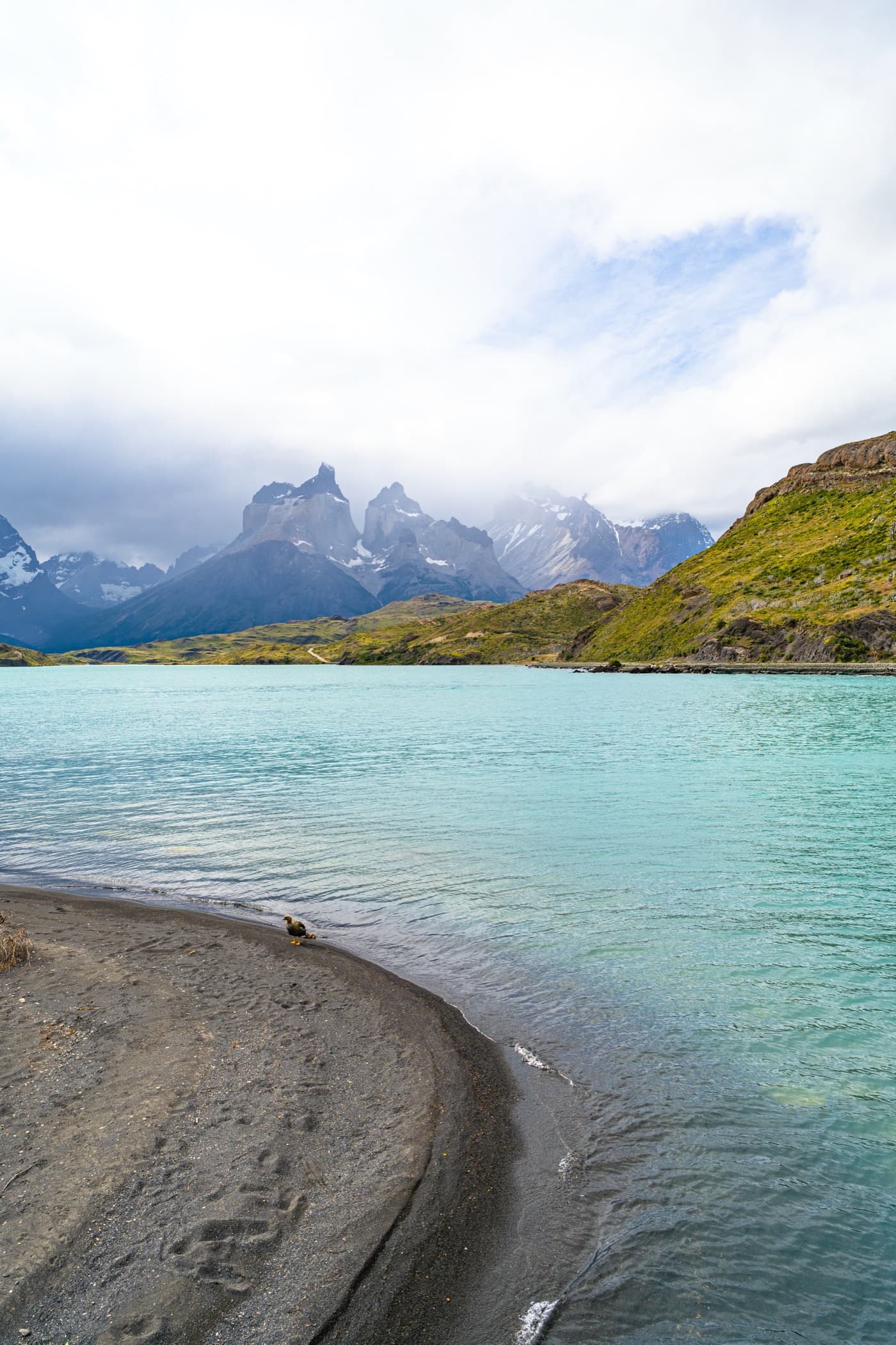 If you have ever seen photos of Patagonia, you have surely seen Lake Pehoé. Lake Pehoé is inside Torres Del Paine and is home to the beautiful turquoise water. If you're driving inside the park, you're going to go through Lake Pehoé and I recommend you stop for a few photos — it's gorgeous!
